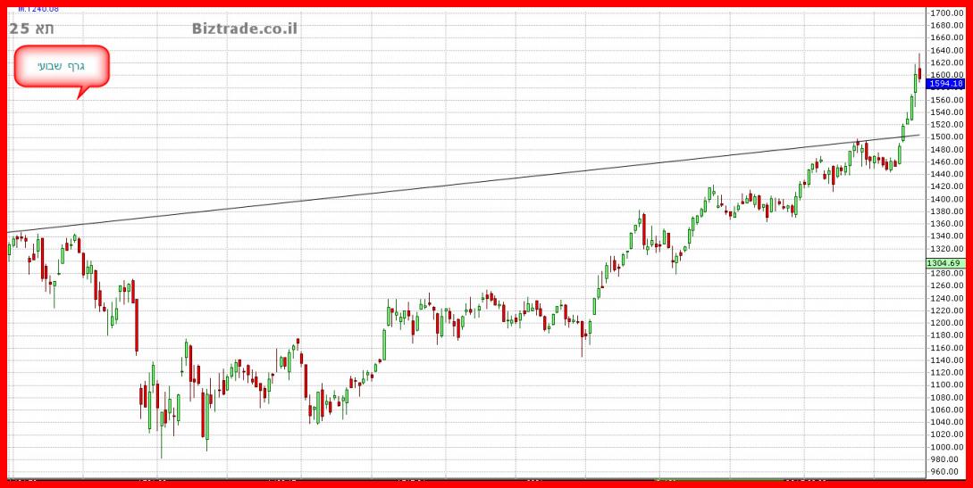 שוב השורט לא נמצא ב תא" 25 , או בתא" רבתי, וההגעה ל 1600 מוכיחה שוב שכאשר רוצים, אין זו בעייה , ולכן השאלה היא האם בסוף יום המסחר הבא , או בסוף יום ה" הבא, המחיר כן ישאר מעל ה 1600 , ואז , ורק אז ניתן לקבל תשובה על סיכוי כן או לא להמשכיות העליות או תחילת הירידות.