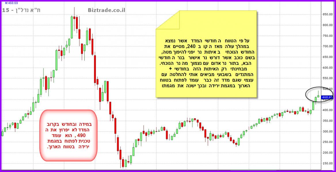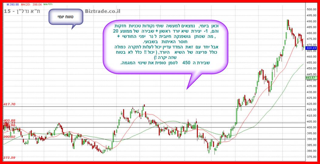 לסיכום ניתן לומר על הטווח השבועי, שהצפי הוא ירידות בהמשך , כאשר כרגע אין אפילו סיבה אחת טכנית להגעה לערכים מעל ה 1600 , כך שהצפי כאן הוא הליכה ימינה + ירידות. וקו ה 1505 צפוי להיבדק.