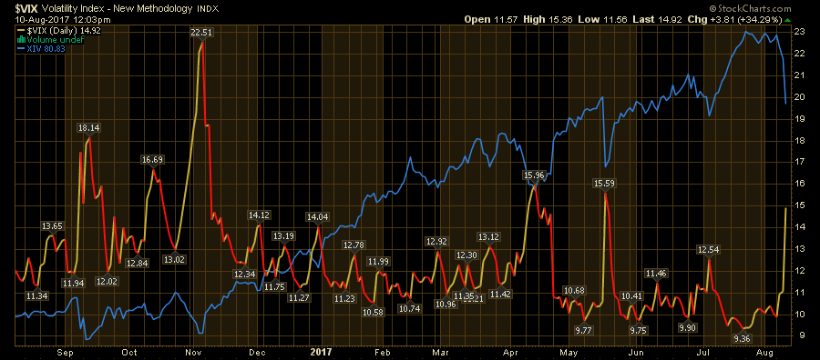 בגרף הראשון המועלה כעת נראית הצמיחה ב-VIX מול גרף מדד ההפוך XIV