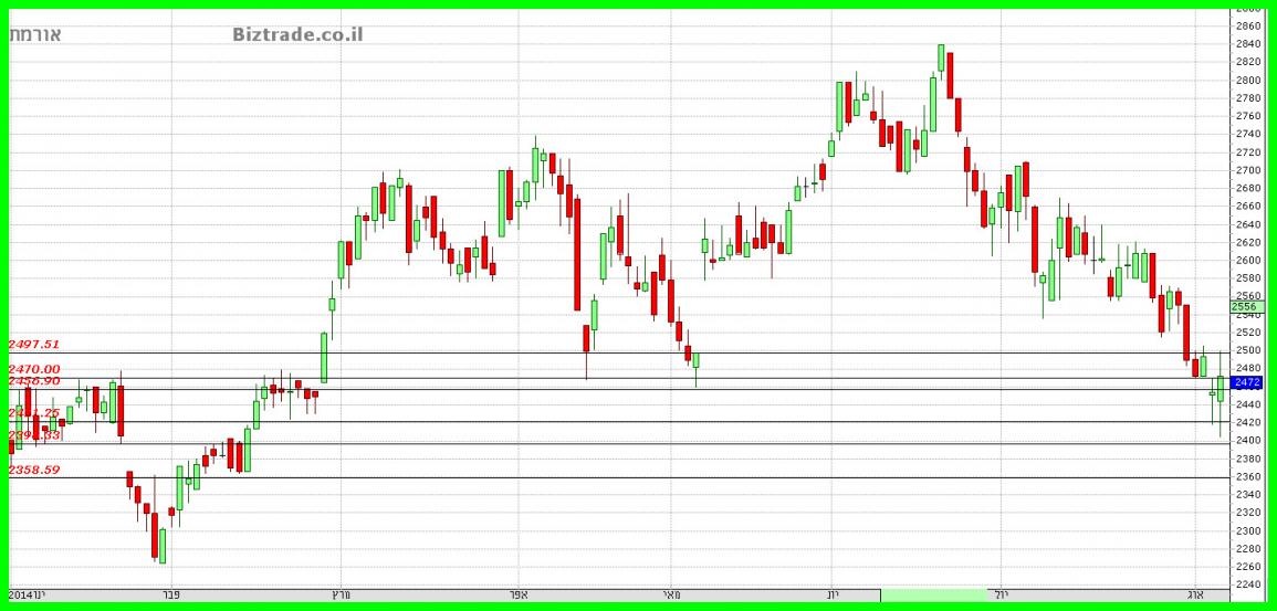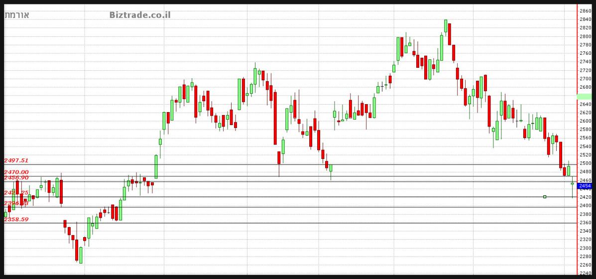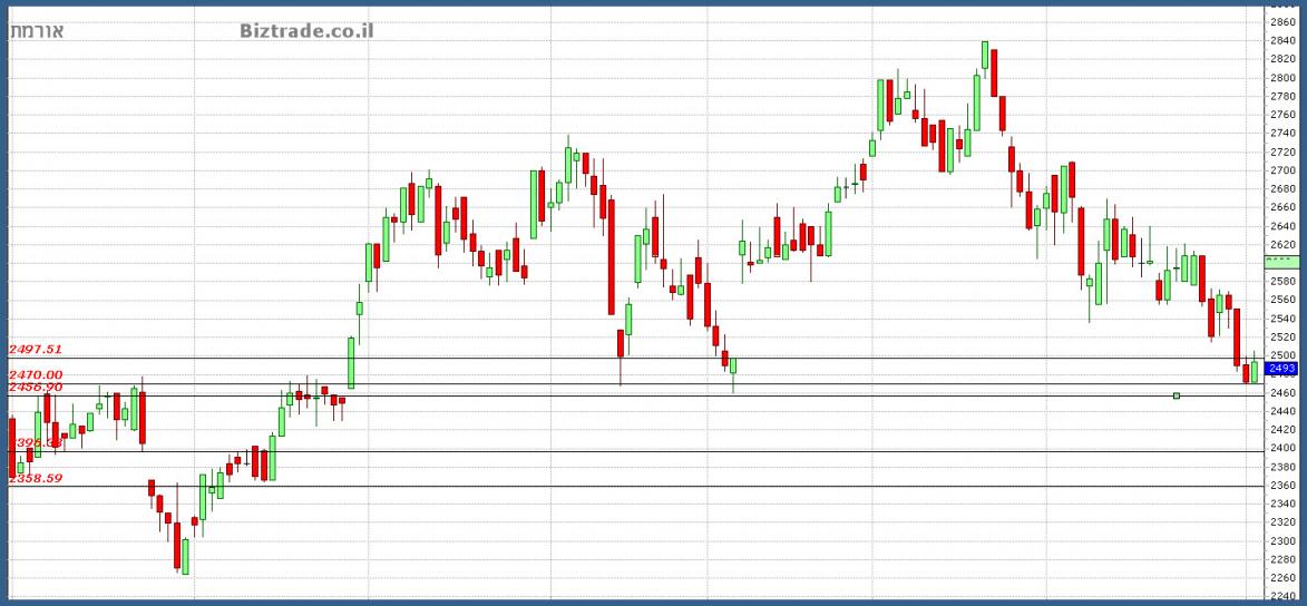 והמחיר עצר בינתיים ב 2470 במשך יומיים, בודק את ה 2500 כהתנגדות וסוגר ב 2493.