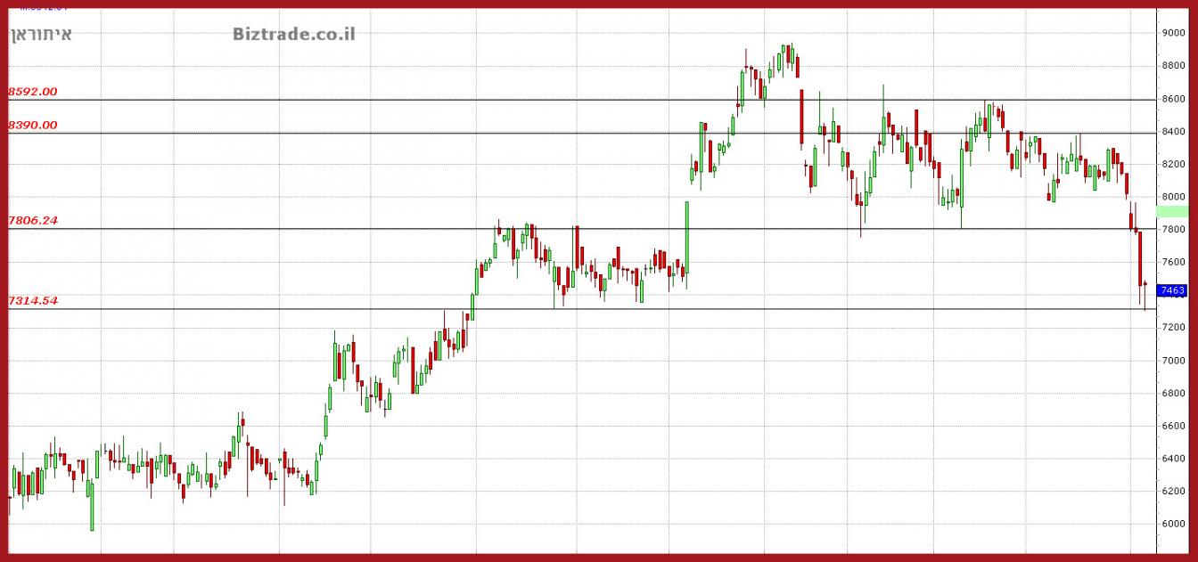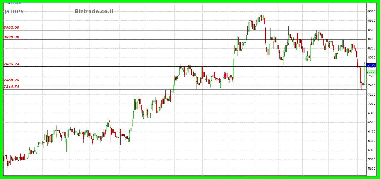 המחיר שובר את הטווח שבו היה תקוע יורד קרוב ל 600 נק" ושם נעצר במשל יומיים על ה 7300.