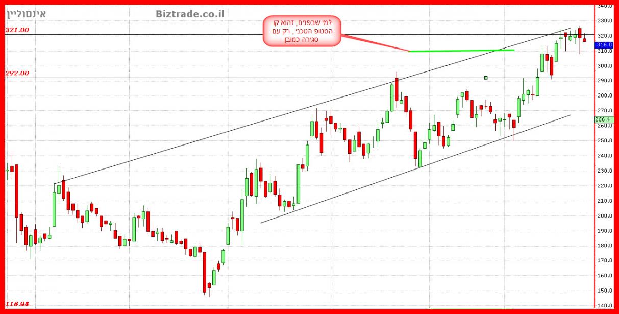 המחיר סוגר 2 נק" מעל סטופ טכני שהומלץ עליו ב 310 , כאשר שבירת ערך זה תוביל ל 292 כהתחלה.