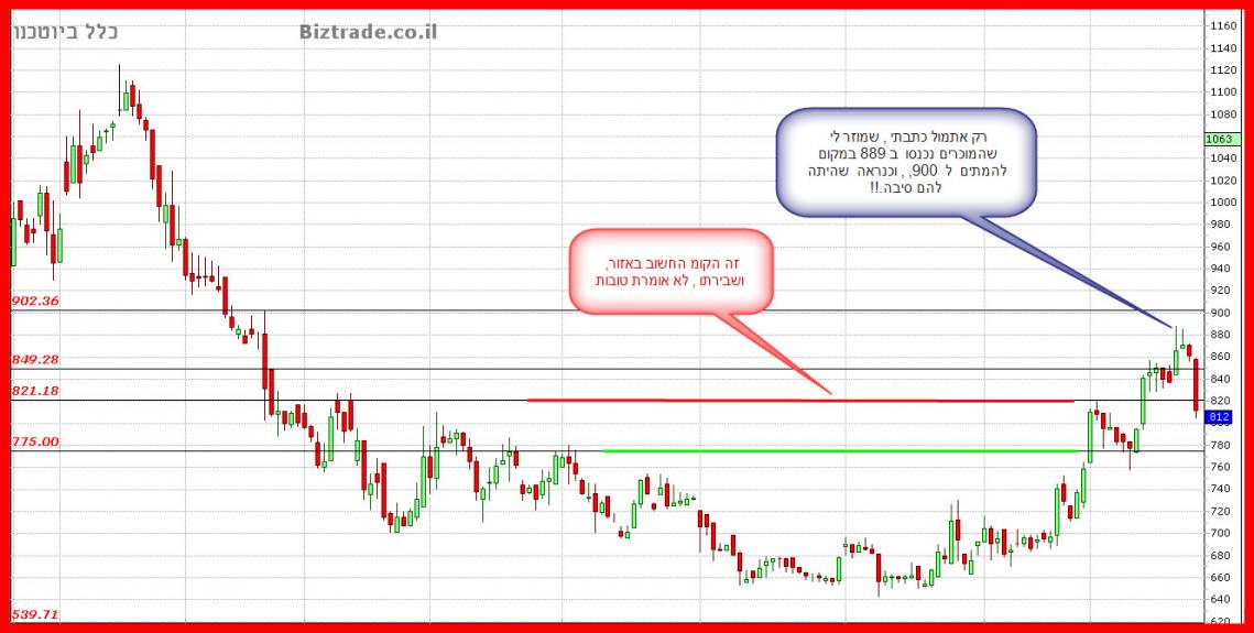 כלל ביו ממשיכה את דרכה על פי העדכונים, אבל חייב לציין שעוצמת המוכרים גדולה, המחיר שובר תמיכות חשובות בדרך , וגם את ה 775 שדובר עלייה רק אתמול כיעד.