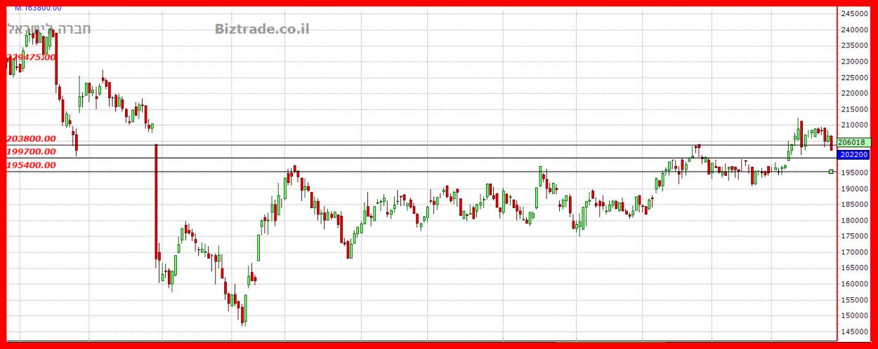 המשך היחלשות וירידת מחירים , תמיכות קרובות ב 199700 -- 195400.