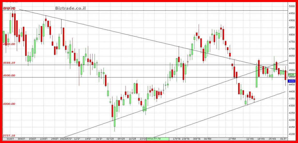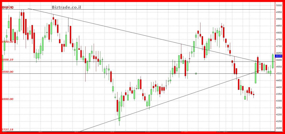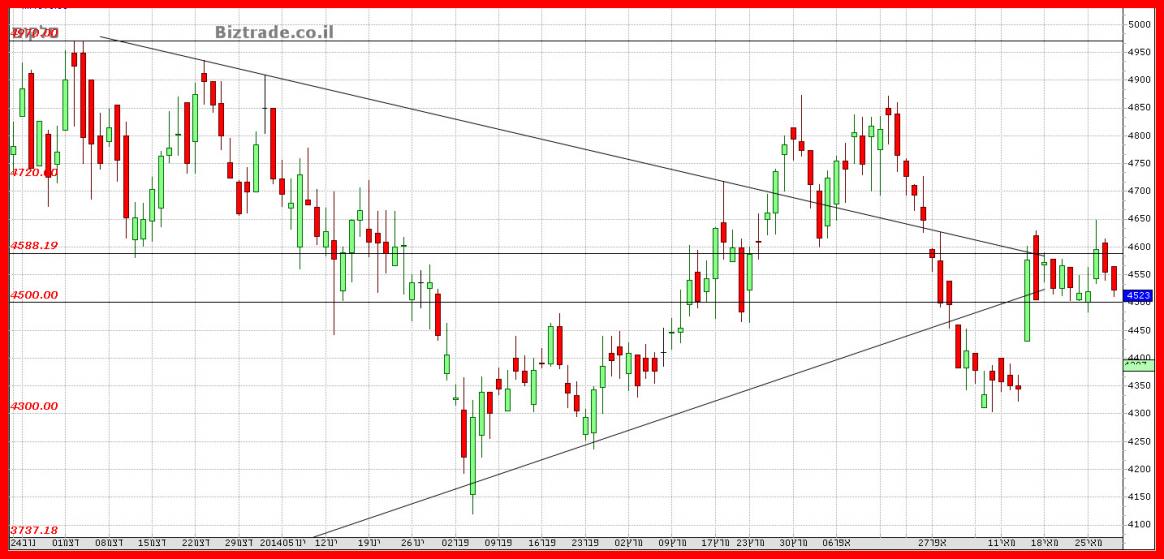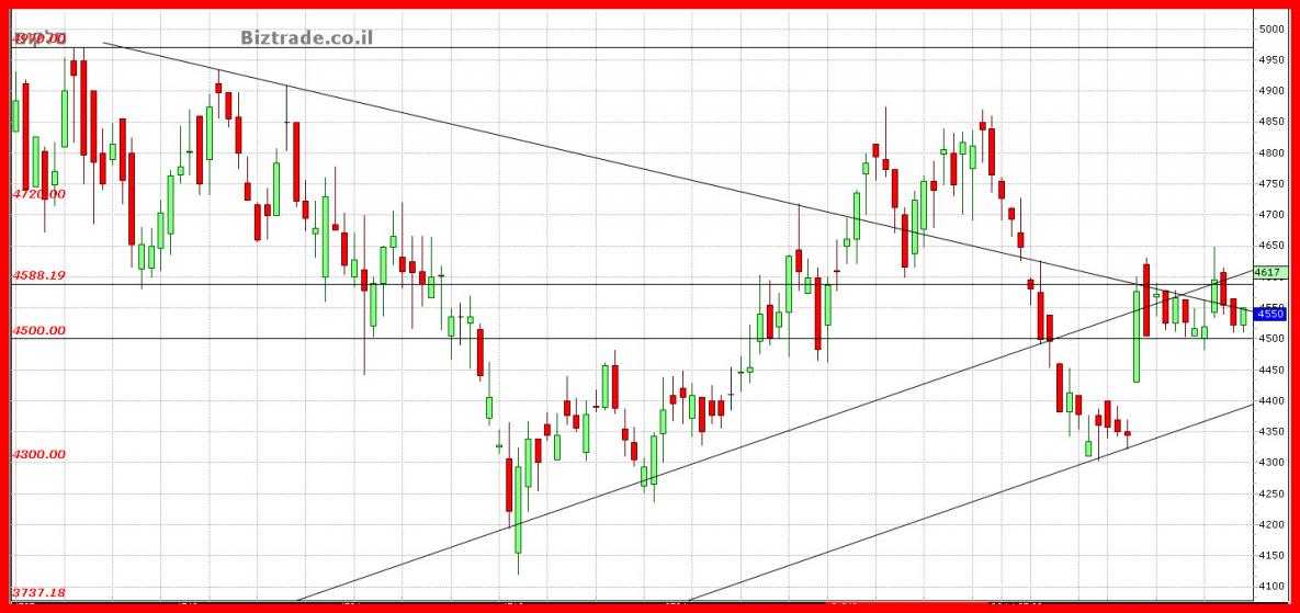 המשך תמיכה על קו ה 4500 , יחד עם ניסיון פריצה של ה 4600 (4590 ).