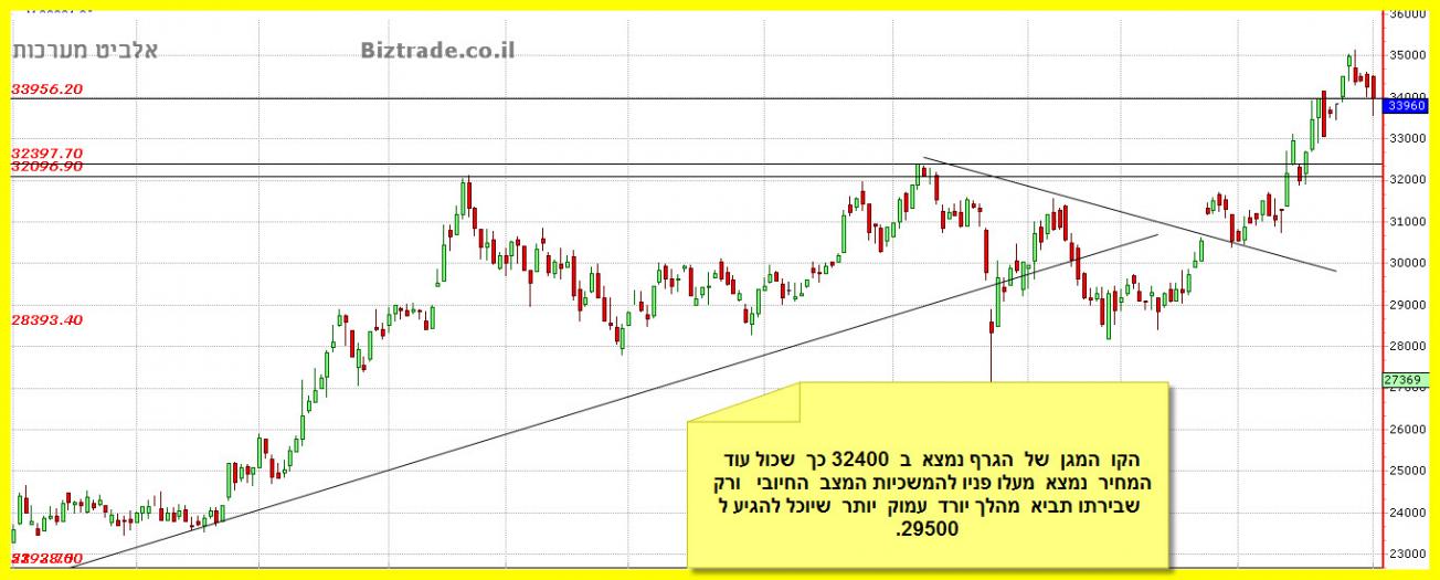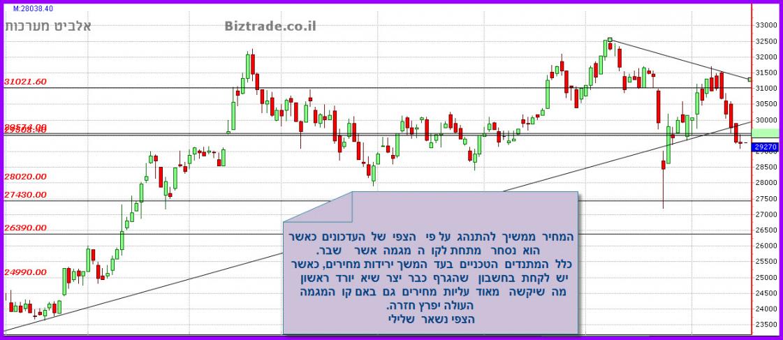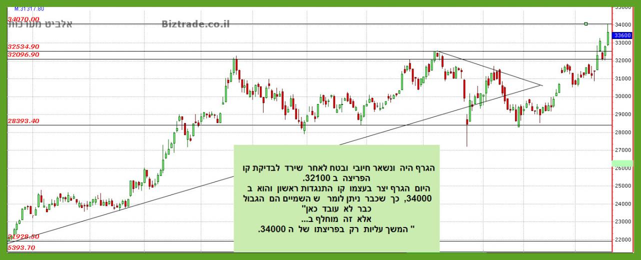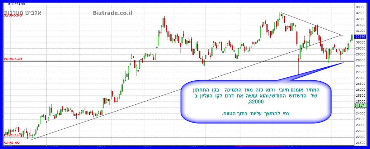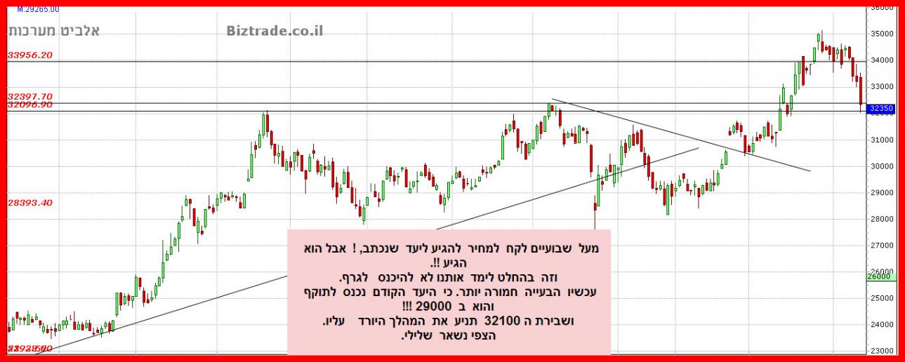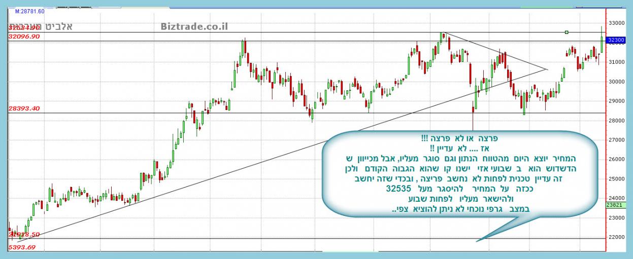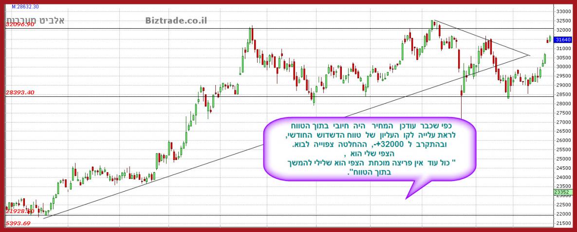 גם במקרה ש הפריצה תיווצר כאן ולא שבירה, אזי המחיר יפרוץ את ה 32000 , יעלה כ 3600נק" וירד בחוזקה לקרת אותה נק" פריצה שהיא ב 22000.