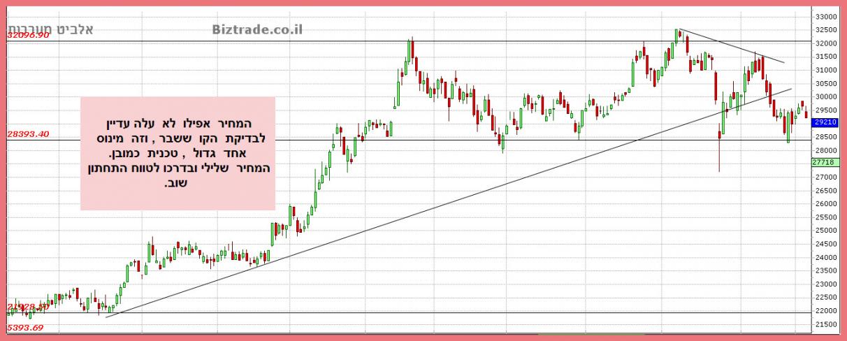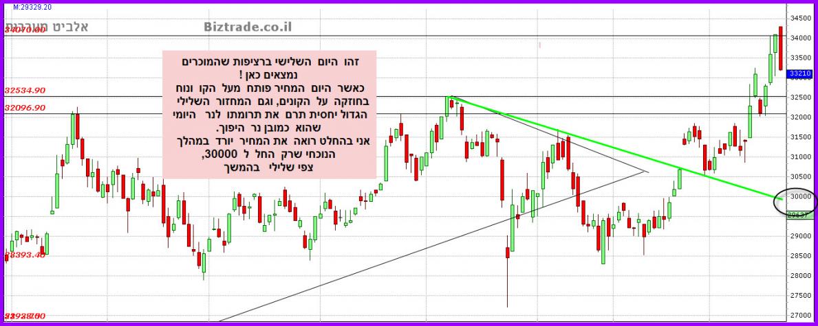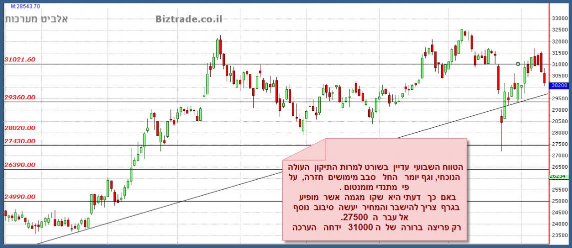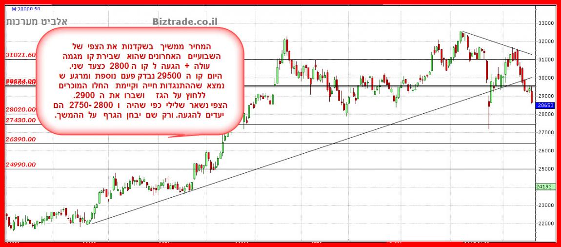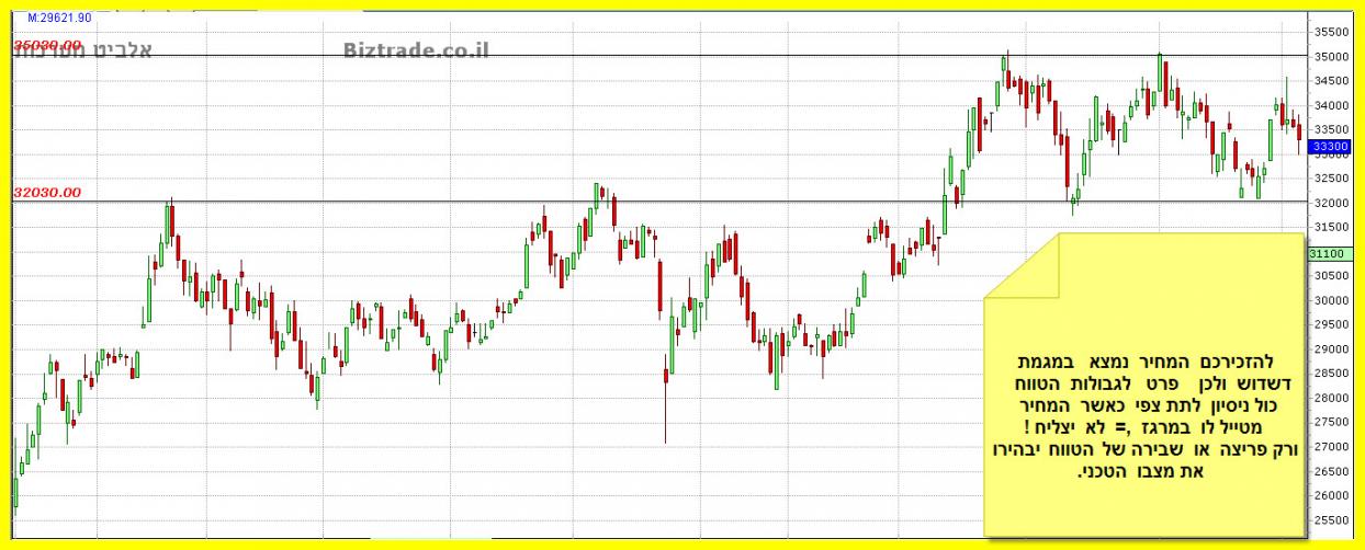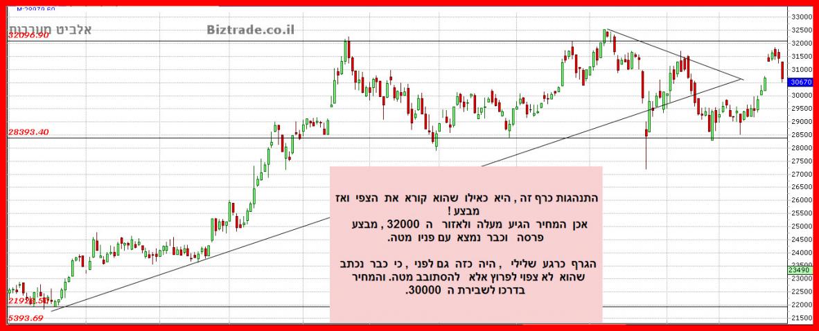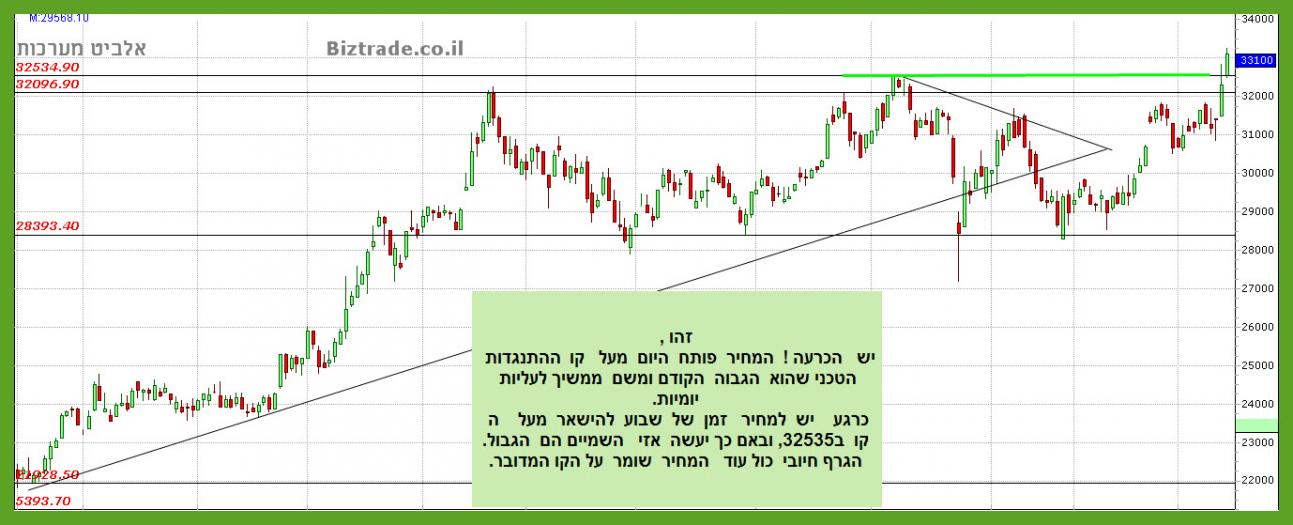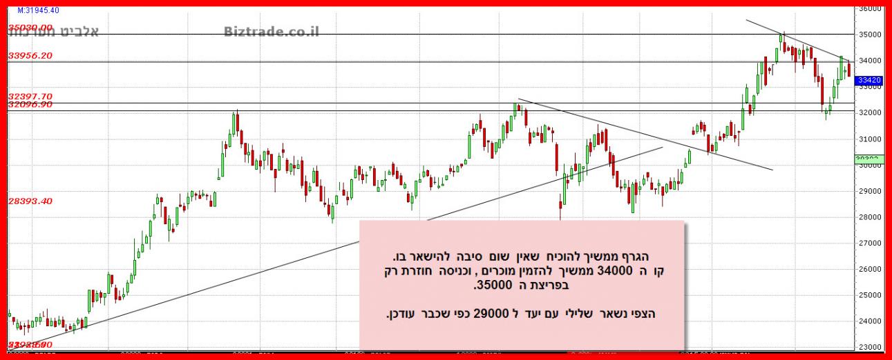 גם במקרה ש הפריצה תיווצר כאן ולא שבירה, אזי המחיר יפרוץ את ה 32000 , יעלה כ 3600נק" וירד בחוזקה לקרת אותה נק" פריצה שהיא ב 22000.