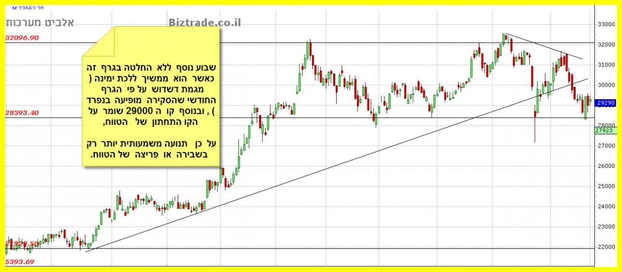 " רק פריצה או שבירה של הטווח ייתנו תנועה משמעותית לגרף -- כאשר כרגע עקב הסיבות שנמנו העדיפות היא מטה = שבירה של הטווח".