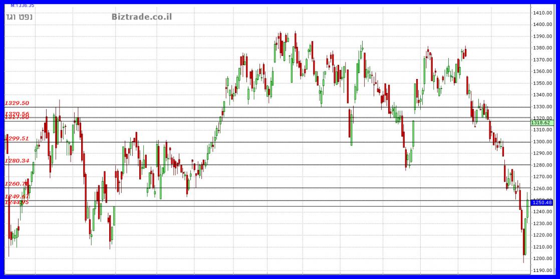 איני יודע באם העצירה בירידות כרגע הם עקב אפשרות לעליות במחירים ולא למכירה במחירים יורדים או שבאמת הם הסתיימו כי ,.... בכדי ש הירידות יפסקו על קו טכני ב 1260 1280 להיפרץ מעל הוזה בינתיים לא קרה, על כן פרק המשך הירידות עדיין קיים באוויר