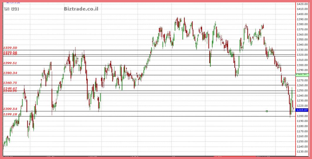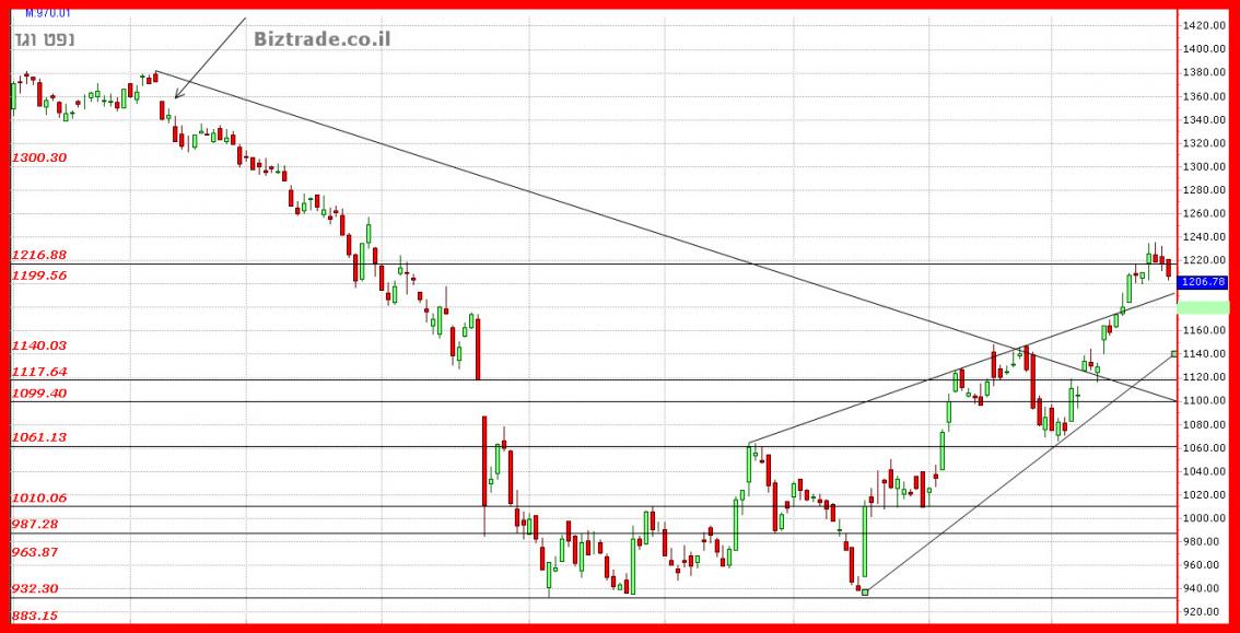 המחיר ניסה לעלות ובדק למעשה טכנית את רמת ה 1200 שרק אתמול שבר,