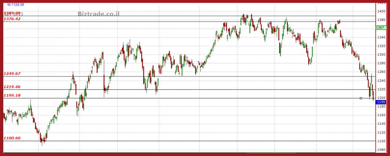 המחיר פותח בגפ מטה היום אל מתחת ל 1200 ושם מתנהל לו כול היום.