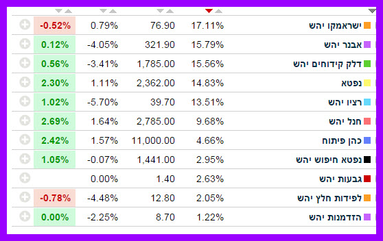 כך שהמניות כמו אבנר, דלק קידוחים , ישראמקו, רציו ( מתחת ל40 ), עדיין מחוץ לתמונת העליות,