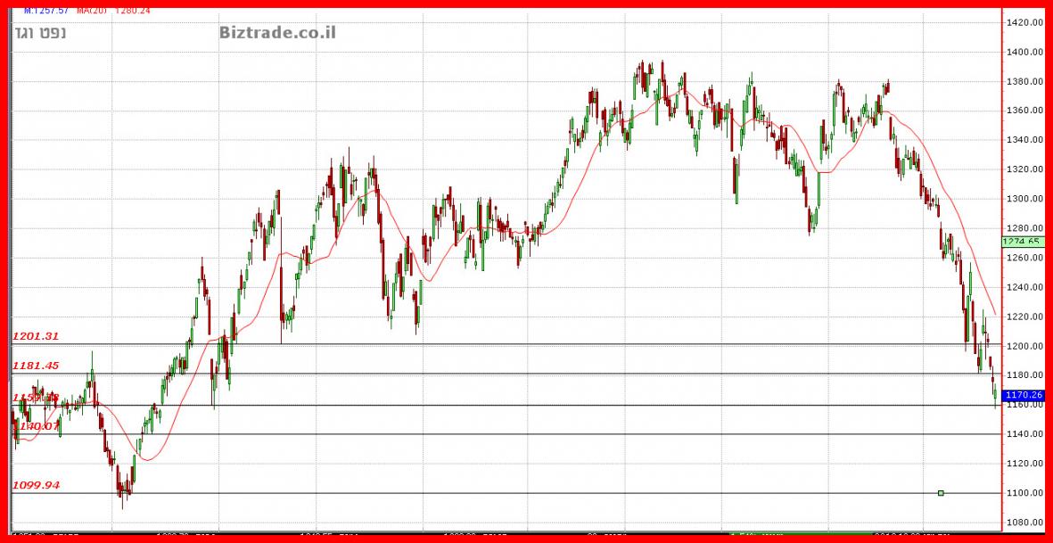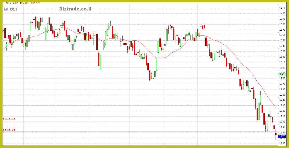 במידה והמחיר לא יחזור מיד, אבל מיד מעל הקו וכבר מחר אזי הצפי יהיה להמשיך לרדת מטה כאשר ה 1180 -1160 בהחלט באים בחשבון.