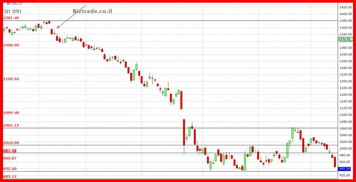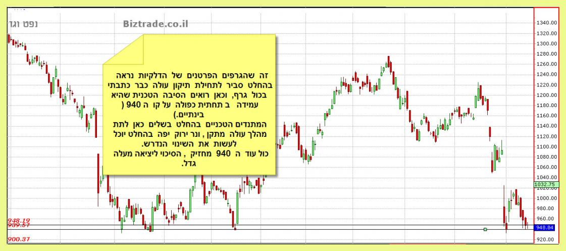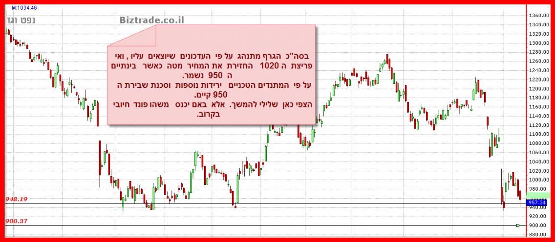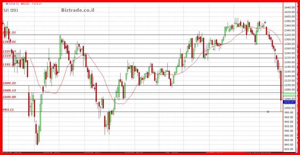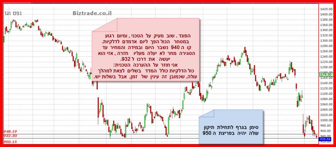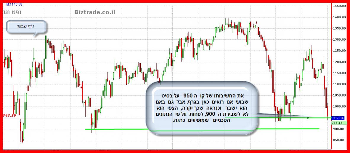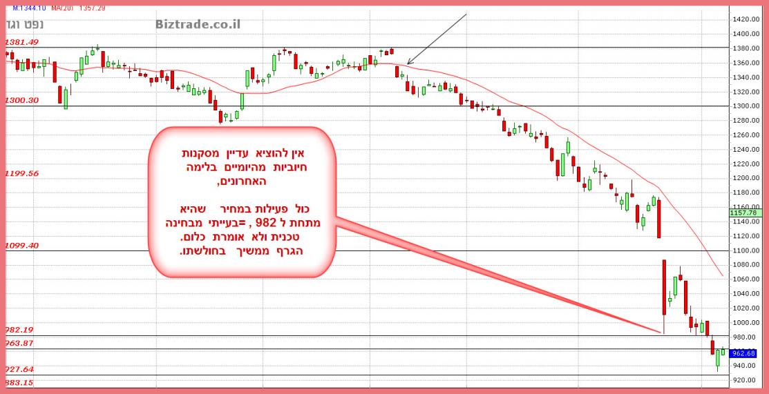 מצבו הטכני של הגרף מחמיר בשבוע האחרון כאשר הוא גם יורד וסוגר מתחת לנמוך הקודם 983 , וגם היומיים האחרונים מורכבים מגפים מטה , אשר נותן תחושה של עזיבה מהירה של הסחורה , כי הצפי הוא שלילי יותר.