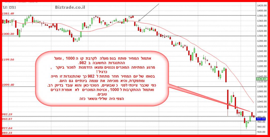 טכנית, והטכני כבר חזר מזמן לגרף ) המחיר מנסה לבלום על קו של תחתית כפולה ב 984 , ויחד עם זאת ניסיון הפריצה של ה 1000 היום לא הצליח.