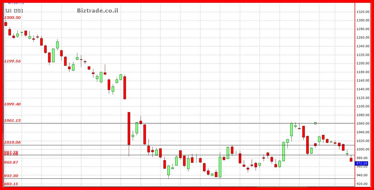 במידה והתמיכה של התחתית הכפולה תישבר אנו צפויים לעוד סבב ירידות , כאשר התמיכות השבועיות הקרובות הם 963 --- 920.