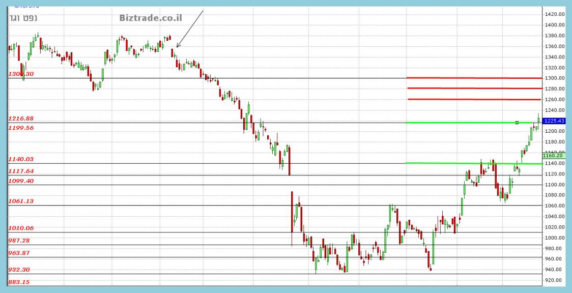 כך שהיום עם פתיחת השבוע המחיר מנסה לשבור שוב את ה 1200, שבינתיים בתוך יומי מחזיק מעמד .
