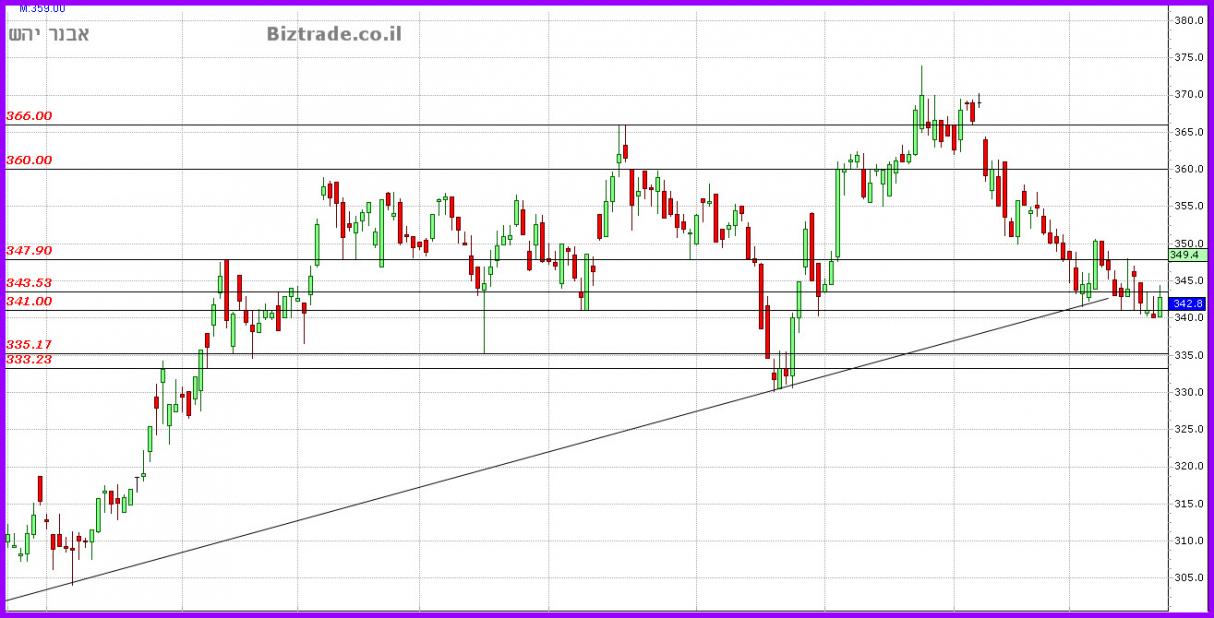 המחיר פותח היום מתחת לקו ב 341 ושם הוא נסחר כרגע .