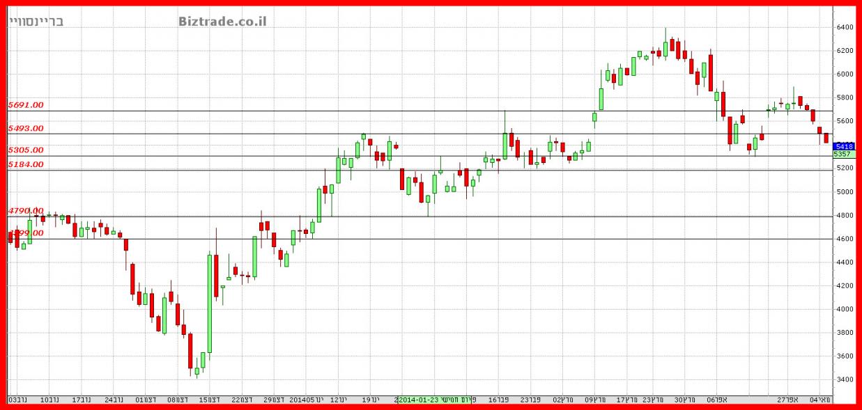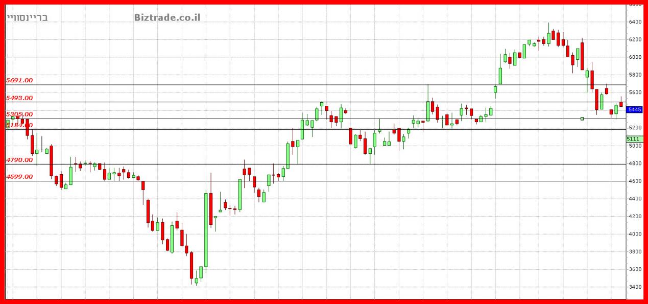 המחיר מוצא תמיכה זמנית על קו ה 5300, אבל חוסר יכולת הפריצה של ה 5500 , מעיק על המשך העליות .
