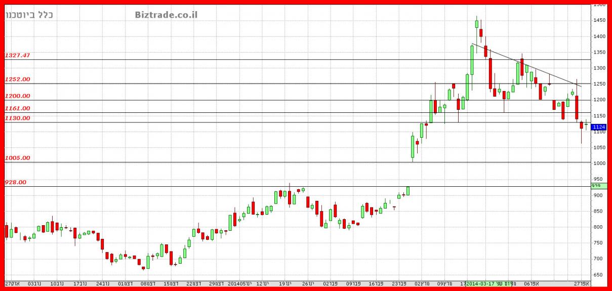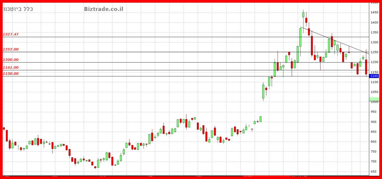 המחיר בקושי נתמך על קו טכני ב 1130 והגיע לסגירה בסופו של יום ב 1140,