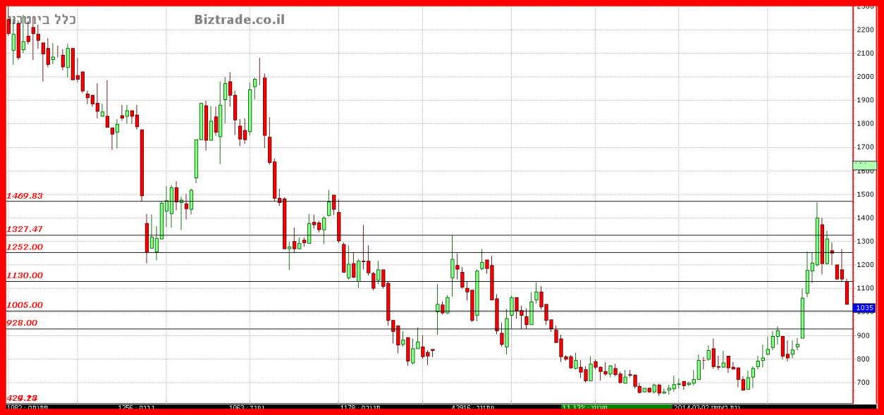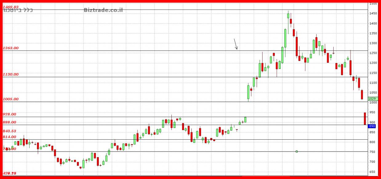 שבירת ה 1100 היום ובינתיים , זורקת את המחיר לחור פתוח שבין ה 1000 ל 1100.