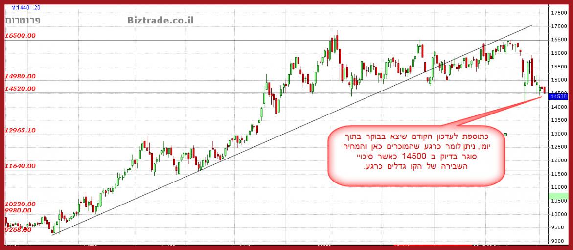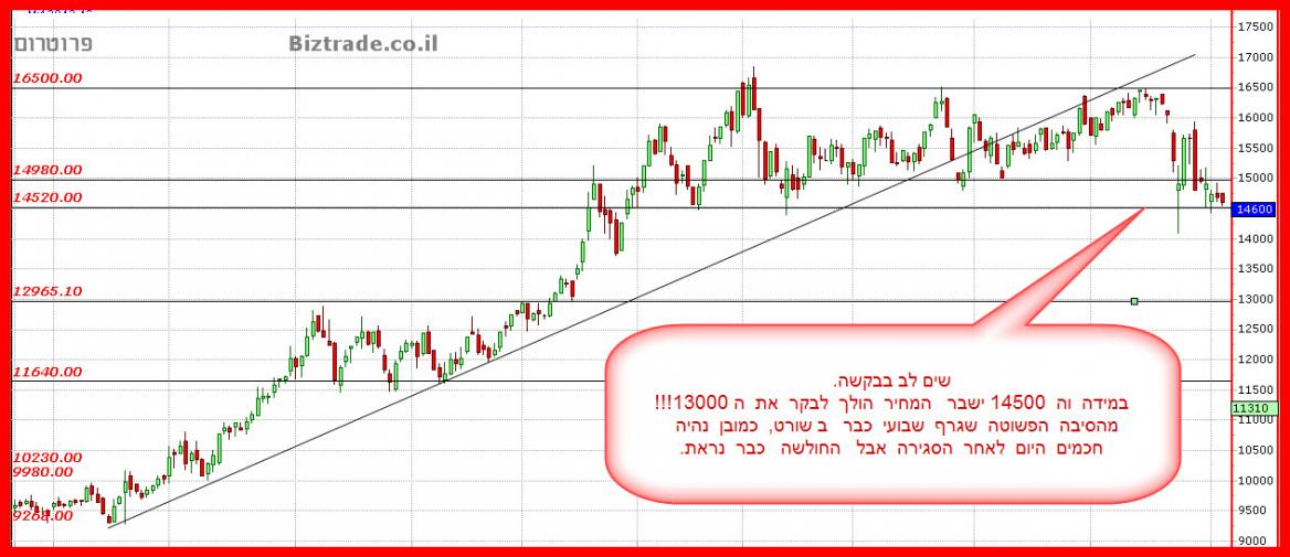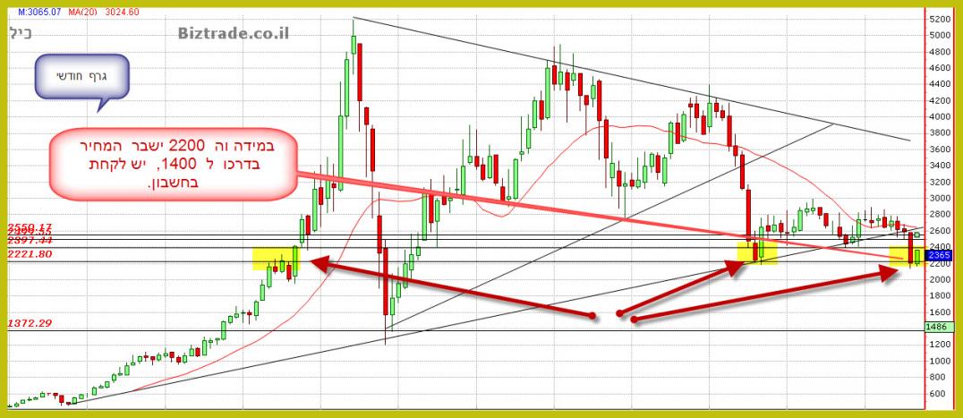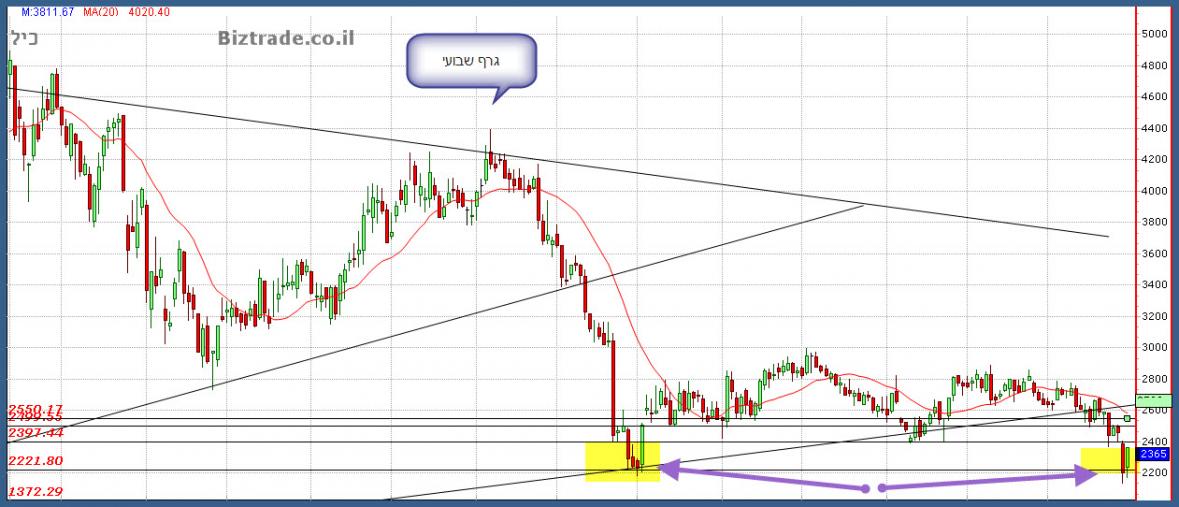 מצבה שלכיל השבוע היה בסכנת הידרדרות מטה כאשר בינתיים זה נעצר. ובכדי להראות כמה ה 2200 חשוב בטכני הבאתי לך 3 טווחי זמן , ראה בבקשה את הגרפים שבועי וחודשי.