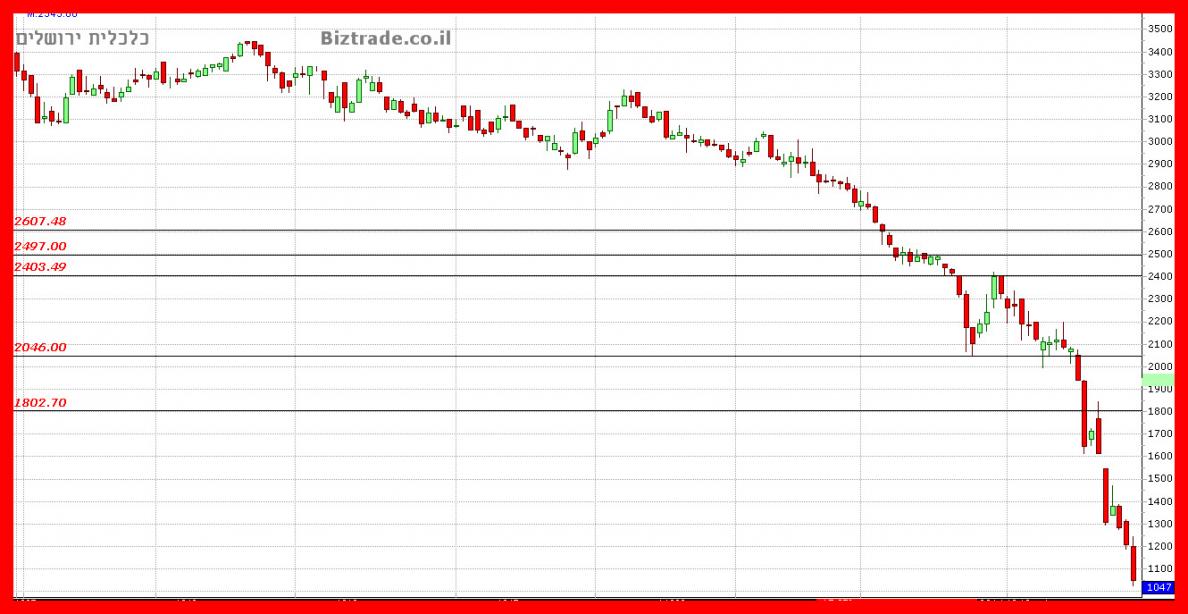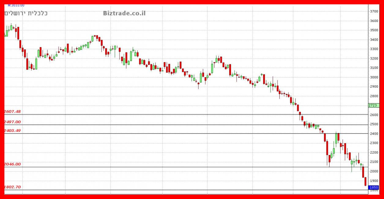 כפי שעודכן אתמול , המחיר סגר ב " חור " טכני , בין תמיכות וכבר מהפתיחה הוא עושה את דרכו במהירוץת ל תמיכה הקרובה ב 1800 וכרגע המחיר נסחר ב 1830 עם ירידות של מעל 5% !