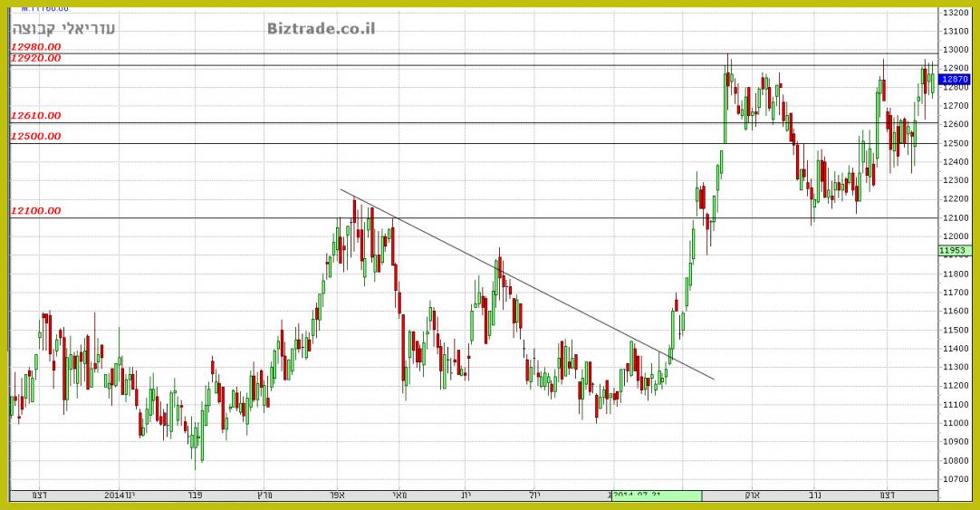 כול עוד המחיר נמצא מעל ה 12900 פניו לעליות נוספות אבל כול חזרה מטה עם שבירה של ה 12900= יורדים חזרה ל 12600 --12100.