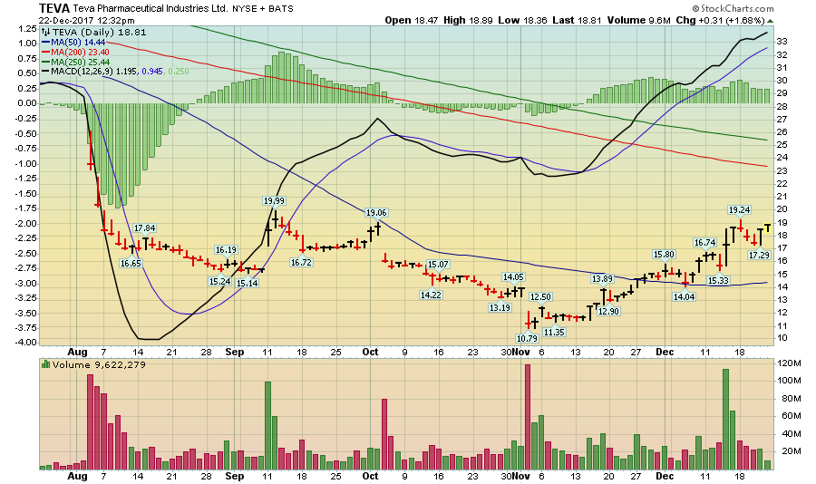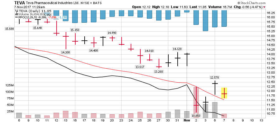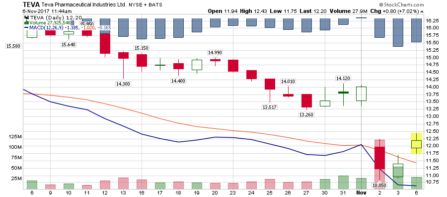 המגמה הדובית גורמת לדישדוש בגרף המניה ולירידה הערב למרות הצמיחה הרגעית היומית בימים האחרונים ברמת המחיר של 10.79 דולר. הגרף נע מתחת לממוצעים נעים 200 ו-250 ימים, ז"א המגמה הדובית הינה בטווח הארוך.