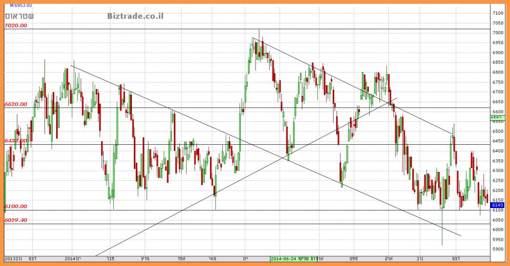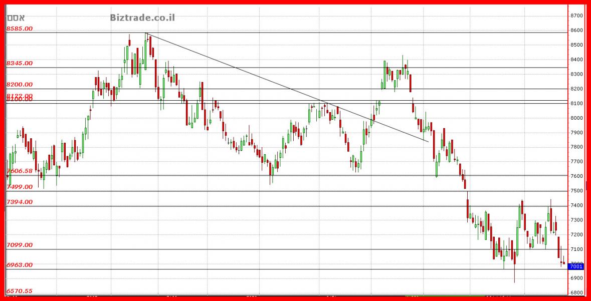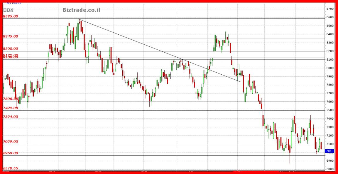 המחיר נמצא נק" אחת מעל ה קו החשוב ב 7000 , וכפי שעודן בסופ"ש היעד הטכני עומד על 6800 כרגע, והמחיר בדרכו לשם.