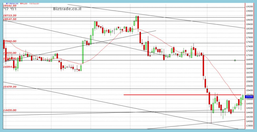 המחיר היה צריך לפרוץ את ה 15200 ולצערי זה לא קרה, ובכך זה משאיר בסכנה את ההמשכיות של העליות.