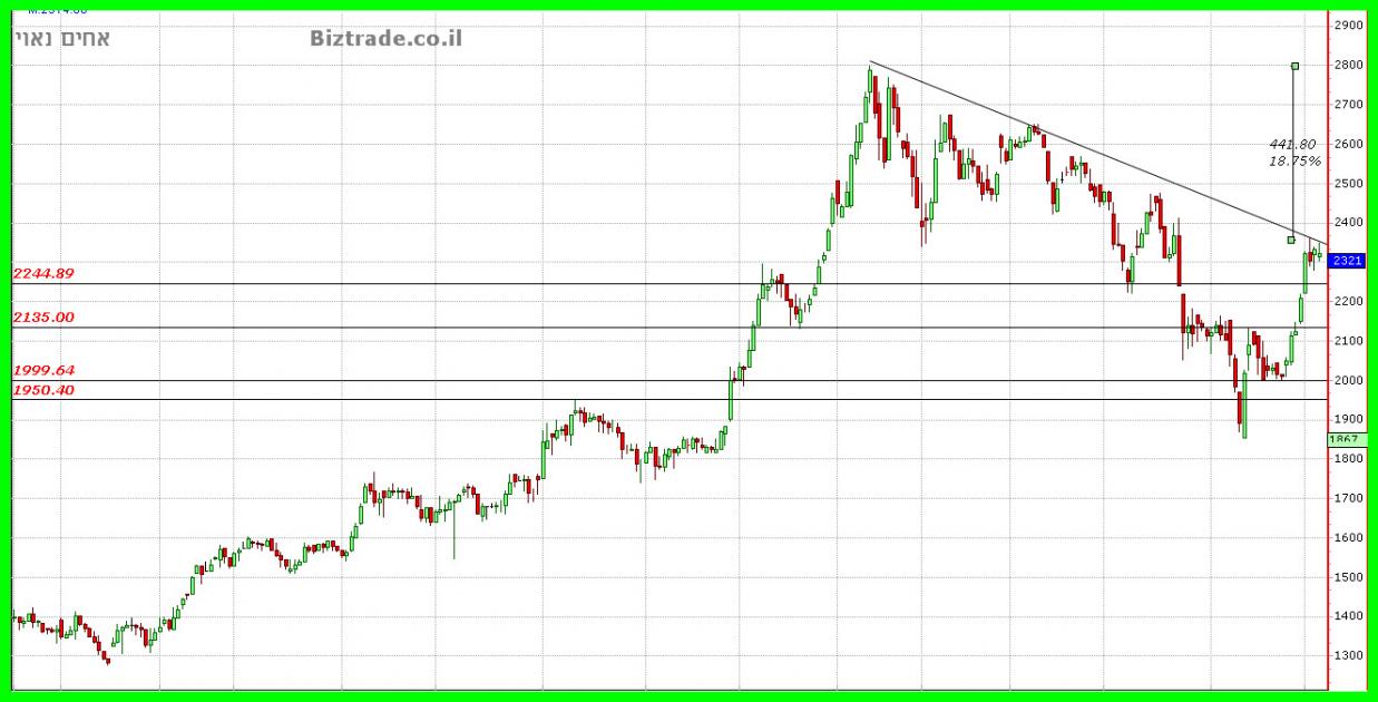 בסה"כ עלייה יפה מ ה 1800 , עד ה 2300, כאן הוא תקוע 4 ימי מסחר.