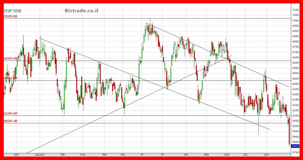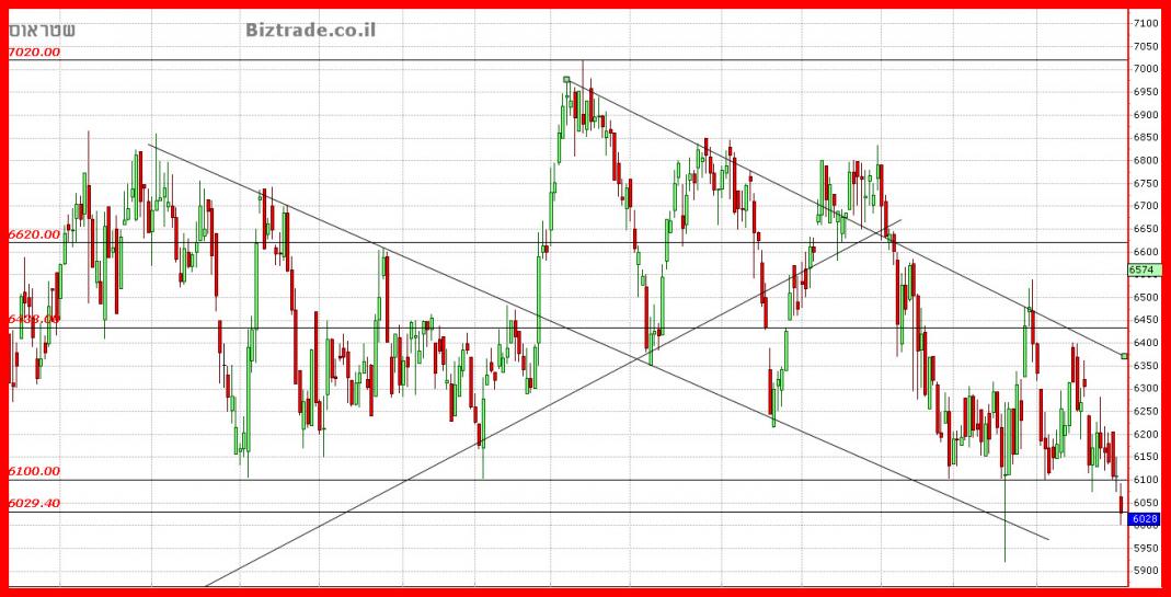 גם גרף זה מאוד ממושמע על פי העדכונים ואתמול המוכרים מצליחים לשבור את ה 6100, ושבירה זאת יוצרת יעד טכני ל 5900 -- 5930.