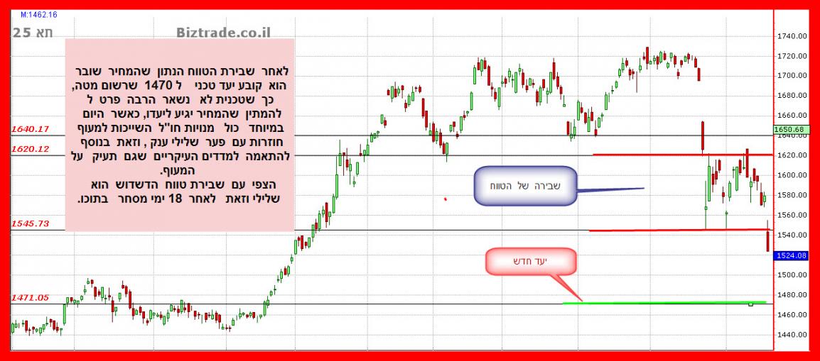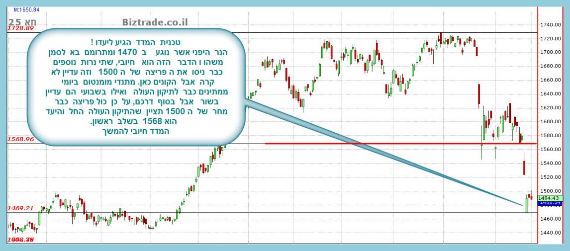 כמובן ש על בגרף חודשי אני כותב כרגע וכאן הדברים מתנהלים לאט, על כן עוד צפויים יחד עם המשך ירידות, נרות חודשיים לעלייה אבל קטנים יותר , כאשר המחיר צפוי בשלב מסויים לפגוש את קו מגמה עולה אשר מופיע בגרף ולהתמודד אתו, ורק שבירתו תוביל מהר יותר לירידות נוספות, כאשר כרגע המדד בהגיעו עליו בהחלט יוכל להיתמך וחזור מעלה לגיחת בדיקה קווים שנשברו .