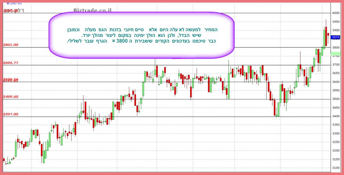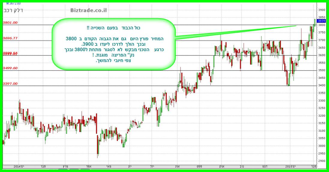 האם גם לאחר הירידות היום 3/2/2015 המשך העליות תלוי בשמירה על קו 3800 בדלק רכב?