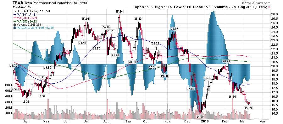 מגמה יומית דובית. לאחר שנתקלה באמצע שנת 2018 בהתנגדות שנבחנה מספר פעמים ברמת ה-25$ חזרה המניה לצלול בכיוונה הדרומי כשהיא שואפת לרמת שערים סביב ה-14$. כמובן, יכולה להיות צמיחה מסוימת כפי שאני מבחין בניתוח עד שער 17.50$.