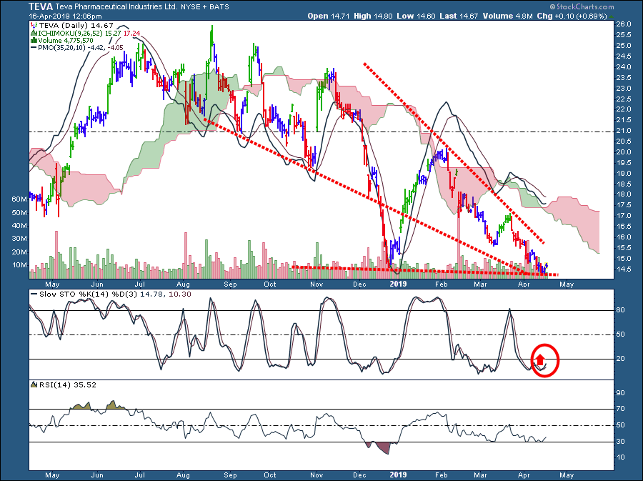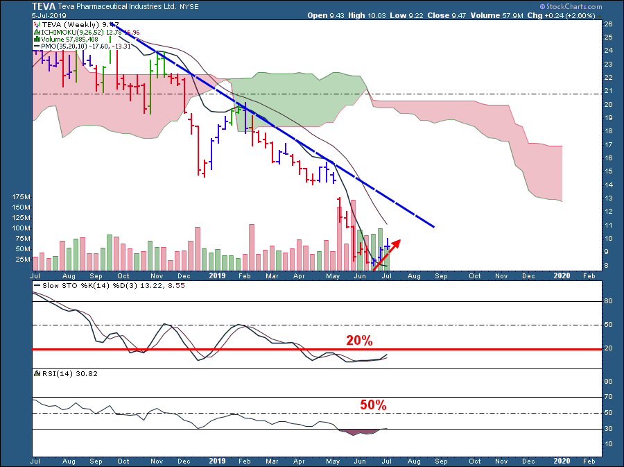 המגמה הדובית בקווי המגמה האדומים והמקוקוים בשיפוע מטה, מקבלת חיזוקים ממתנד ענן האיצימוקו וממתנד ה-RSI הנע בגזרת השורט. בסטוקסטי האיטי קיימת נימה של נסיון לצמוח. אם המהלך יעלה את רמת ה-20% יש סיכוי שתתפתח צמיחה. כמובן שרק מעל שער 23 דולר יש סיכוי למגמה שורית.