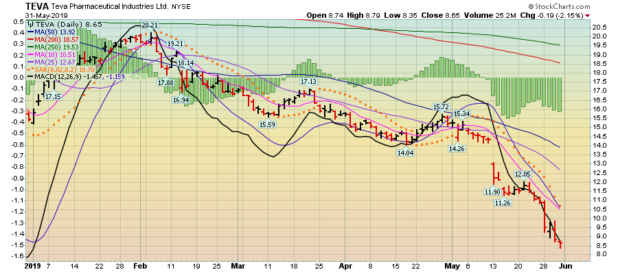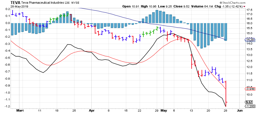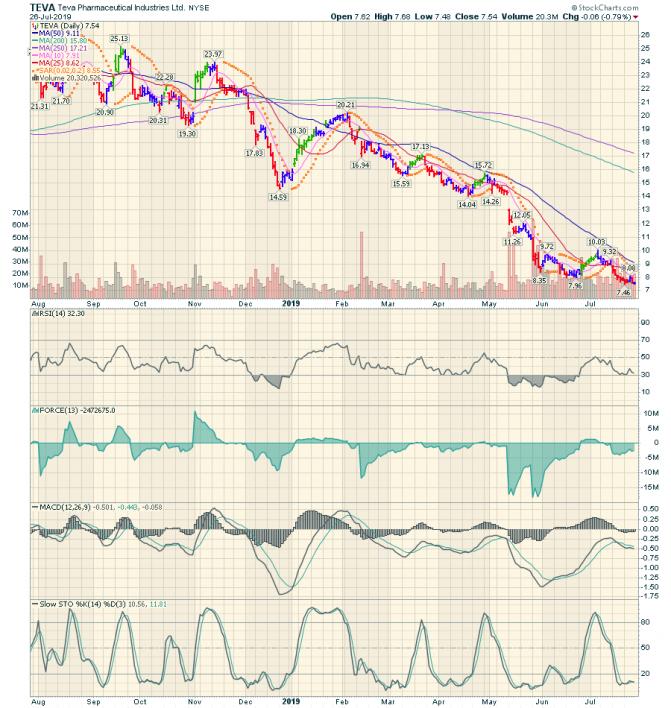תנועת העמודות בגרף היומי מתחת לממוצע נע של 250 ימים (20.53$) ז"א המגמה דובית מהותית. גם הממוצעים הנעים הקצרים יותר בני ה-200 או ה-50 ימים נעים בביטחון מעל גרף העמודות כבר חודשים רבים.