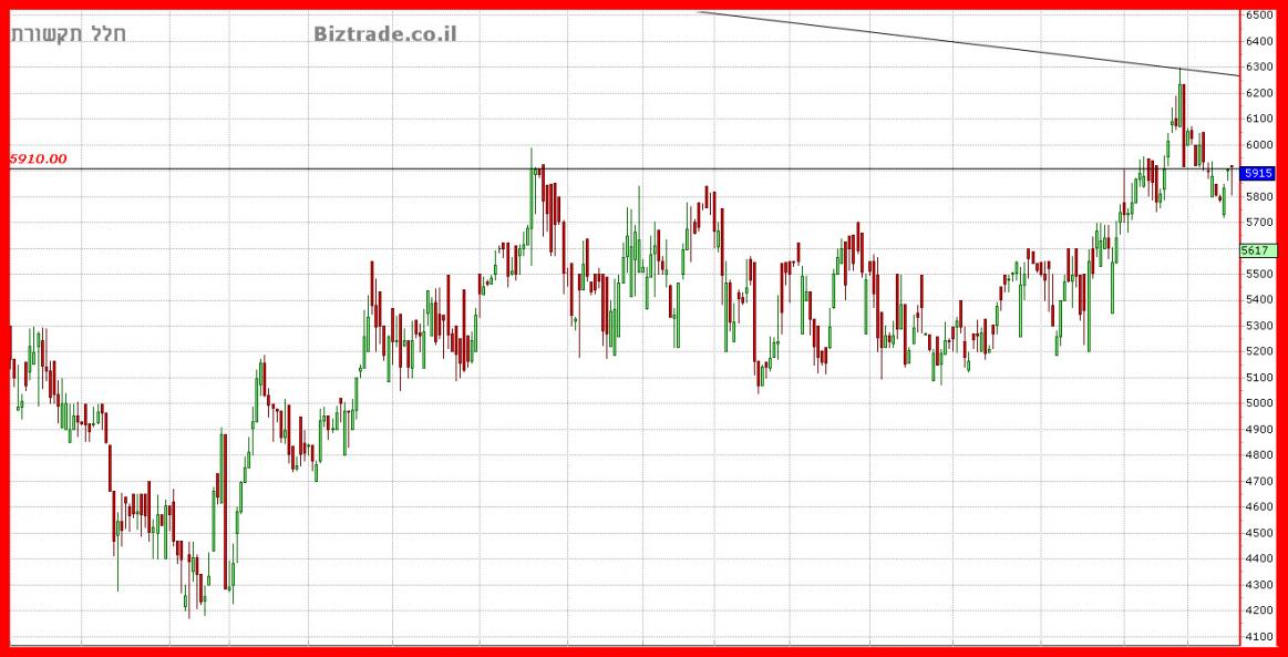 למרות כניסת המוכרים היום הגרף נראה בסדר, אבל יש חובה לסגור מעל ה 5900, אחרת תחזור לירידות ,