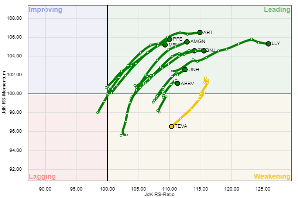 בגרף התנועה היחסית של המניה ביחס למדד ת"א 35 בחודשיים האחרונים, נראית ההיחלשות (בצהוב) בעוד חברות האחרות מהתחום מתחזקות.