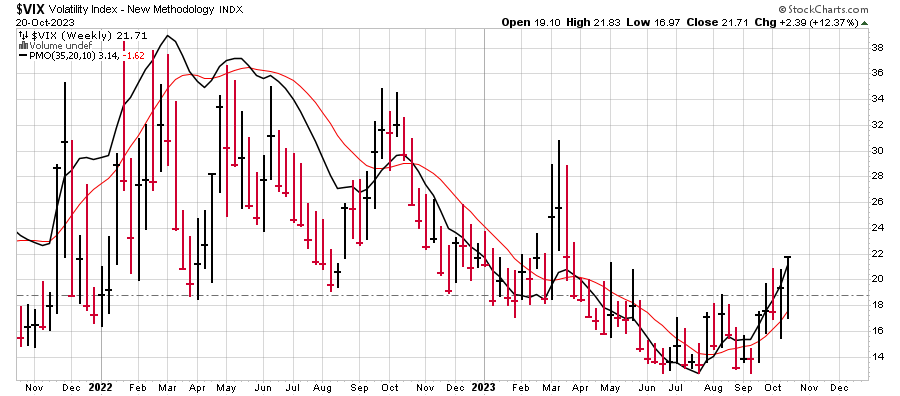 המדד השבועי במגמה דובית בתנועת שורט. למדד יש נטיה לצמוח לכוון ערך 24 נק'. מרגע שהמדד יעבור את שער 22 נק' המגמה השבועית עלולה להפוך שורית.