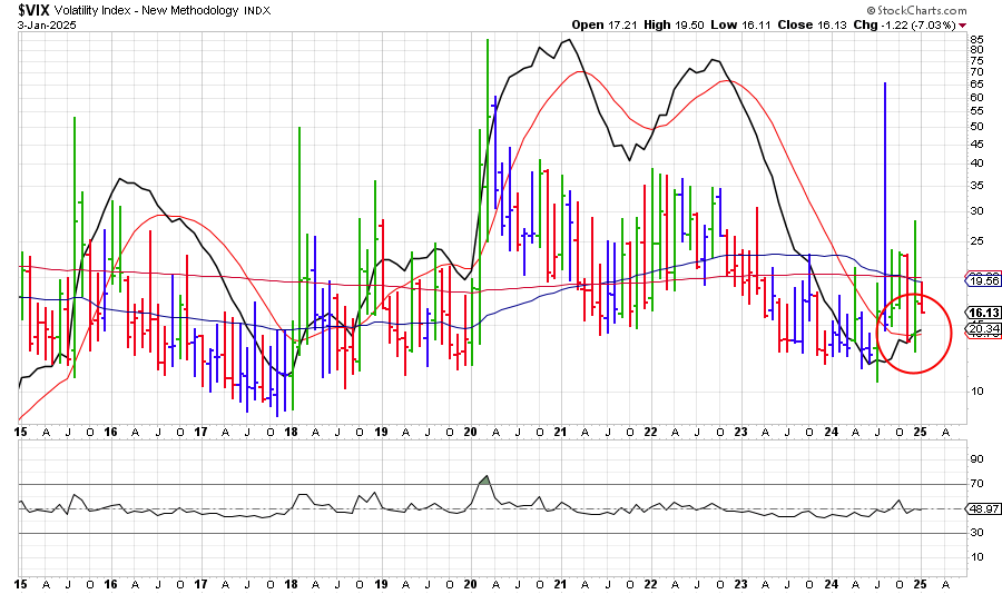 בגרף חודשי הרב שנתי ניתן להבחין מגמות במדד הפחד האמריקאי, המדד מסיים תנועת שורט ארוכה ומתכונן לתנועת לונג שקשה להעריך את מהלכה.