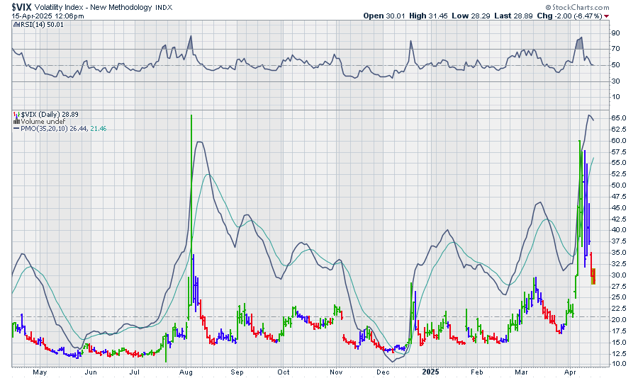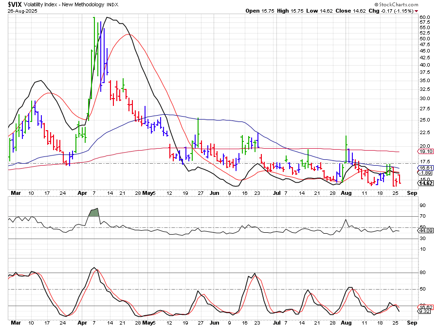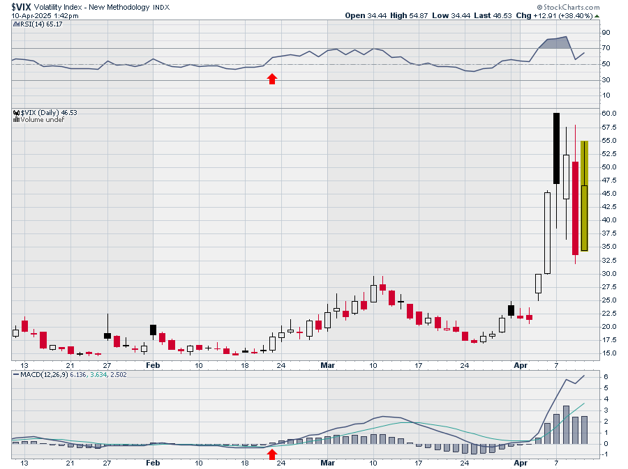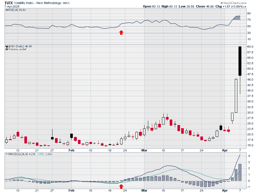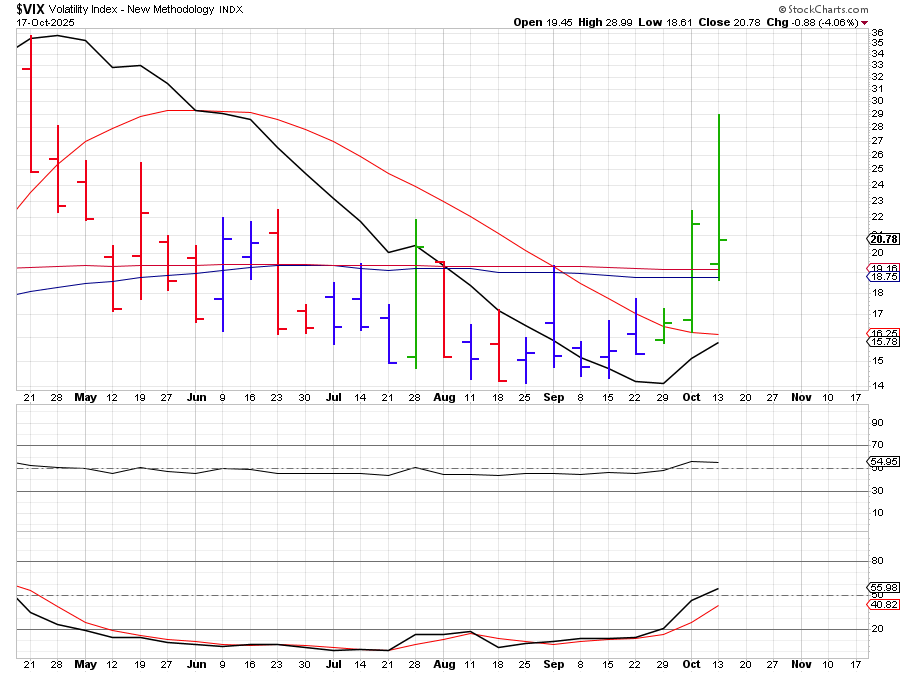הגרף החודשי למשך 20 שנה של VIX ומדד נאסד"ק בשורה העליונה בתנועה מקבילה