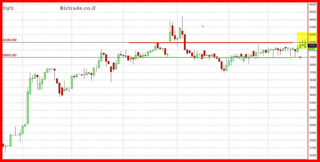 המחיר מנסה לתקוף את קו ה 4100 במשך 3 טימי מסחר ברציפות, ועדיין ללא הצלחה.