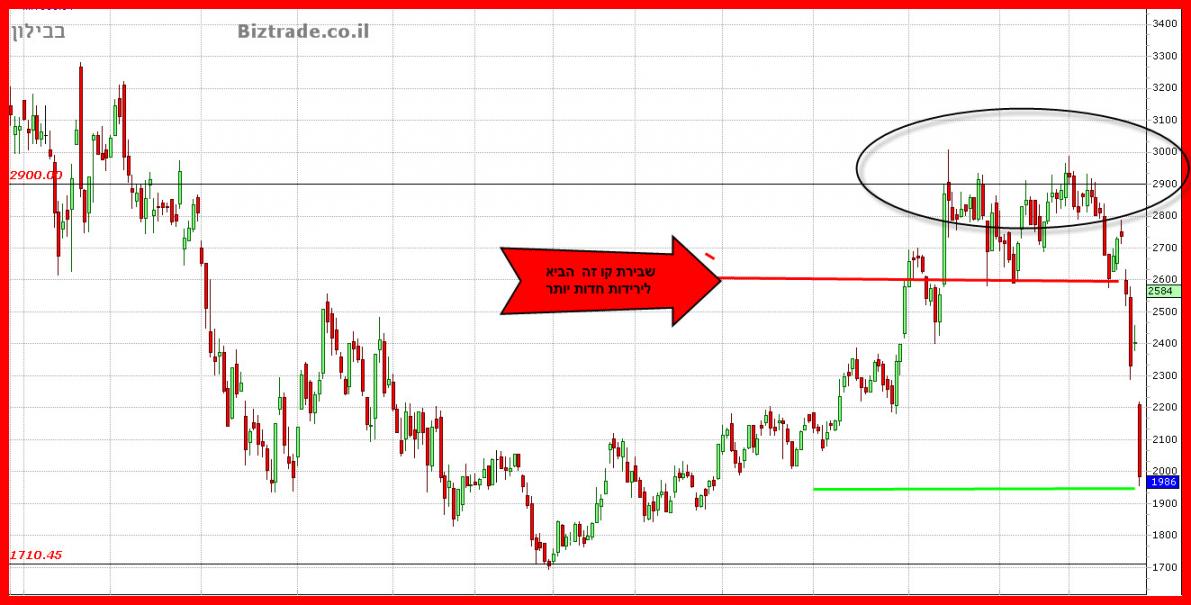 במידה ועד הסגירה המחיר לא יחזור מעל אותו 5600 , אזי טכנית הוא בדרך ל 5400