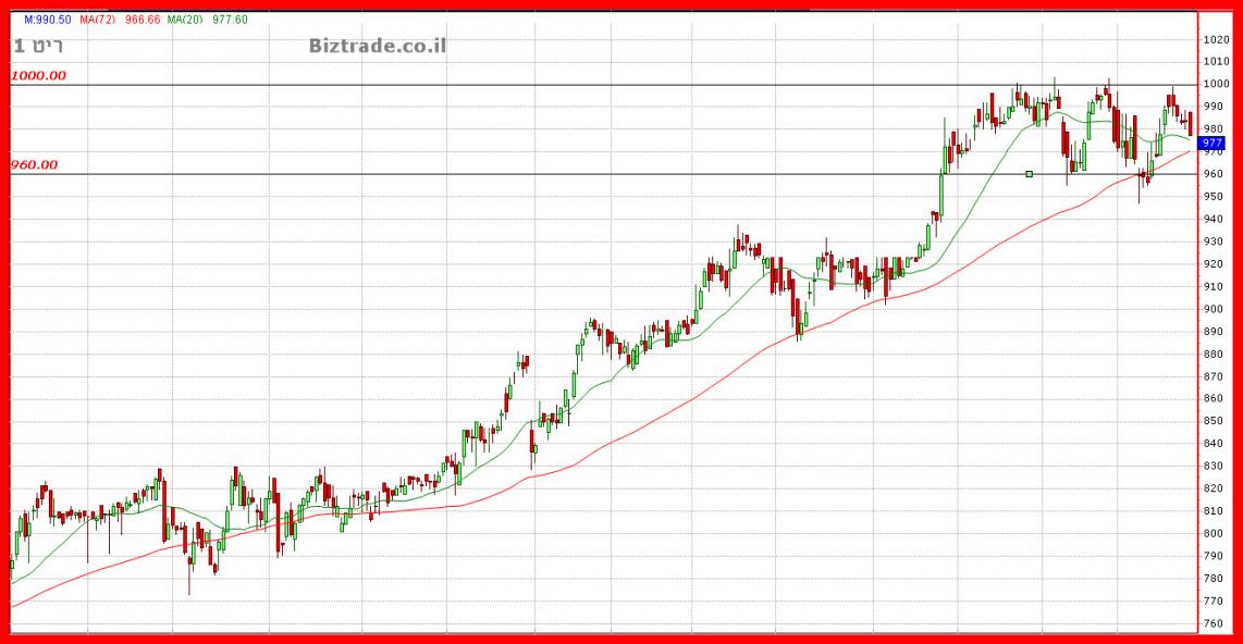 עקב עלייתו שלממוצע 72 מעלה שבירתו הפעם יכולה לסמן משהו שלילי יותר שיוכל להוריד את המחיר מקו ה 960.