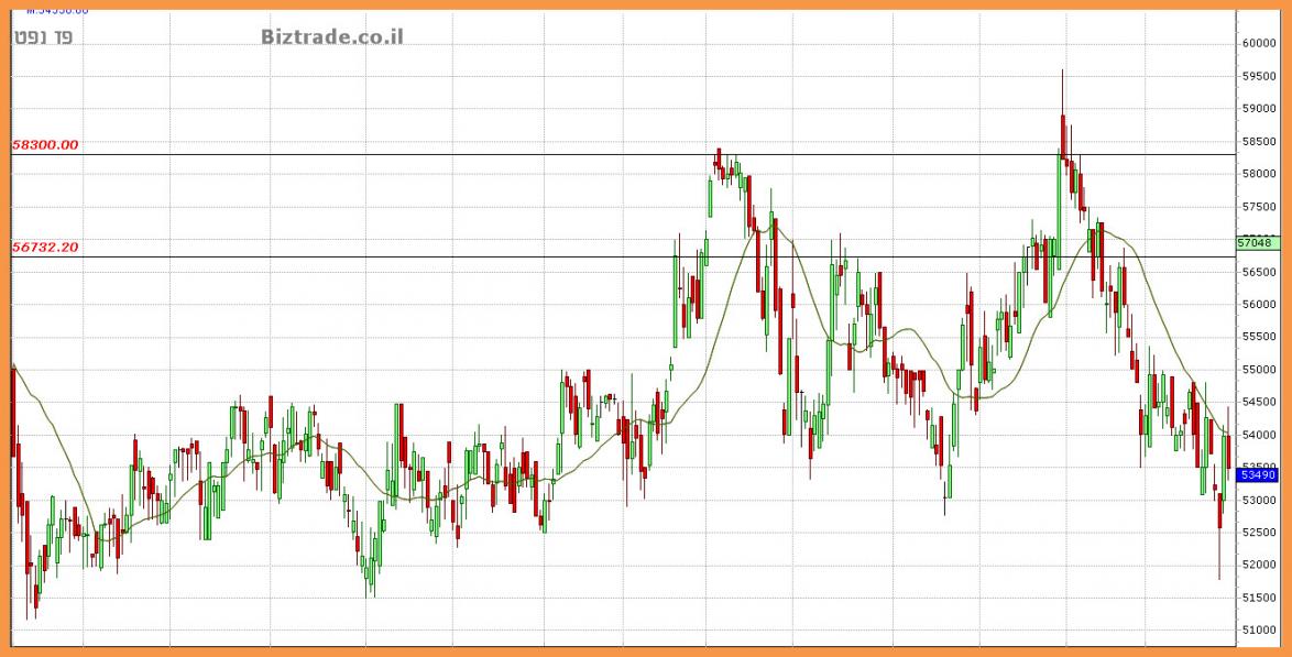 על כן בכדי להתמודד אם ה 56500 שהוא קו קשה יותר , על המחיר להתבסס מעל ה 55000 כרגע.