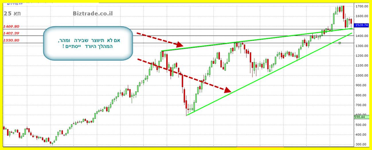 "במידה ולא תהיה שבירה של שני הקווים האלכסונים במופיעים בגרף החודשי, ומהר,נניח, תוך חודש, אז נגמרו הירידות בתא" "