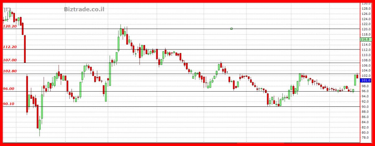 המחיר כבר הגיע לגבוה ב 102, כאשר היעד במשך כול התקופה האחרונה היה 103 ופריצתו כמובן יגביר את המהלך העולה,