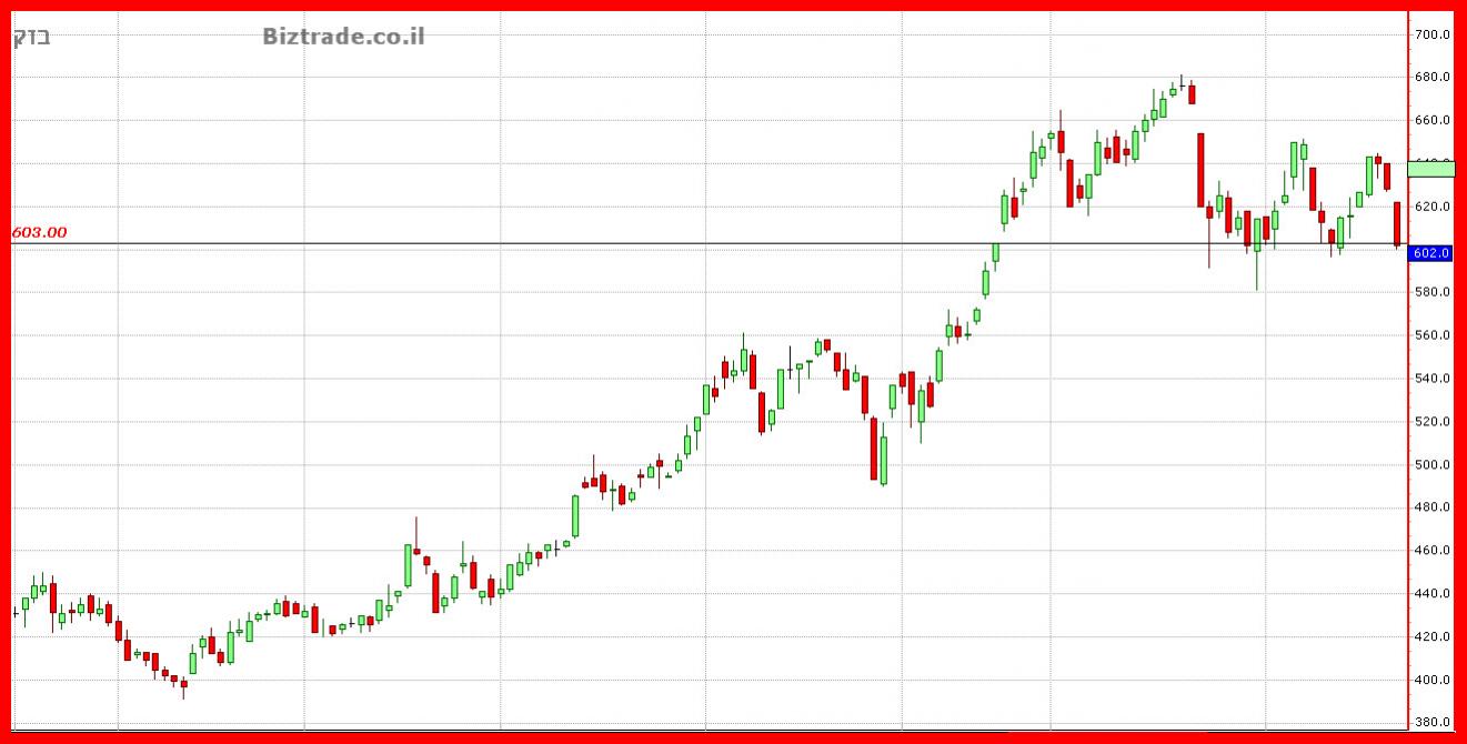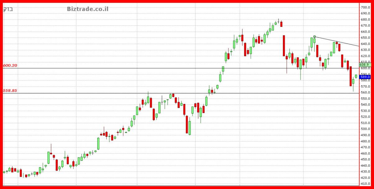 על כן הצפי ליום א" שלילי, עם ניסיון להגעה ל 580 -560 בהמשך.